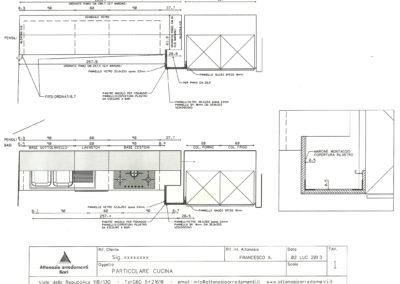Questa cucina, situata in un appartamento a Molfetta, rappresenta una sfida progettuale che ha richiesto grande attenzione ai dettagli e l’uso di materiali innovativi come il vetro e l’alluminio per ottenere un risultato finale di grande impatto visivo.
